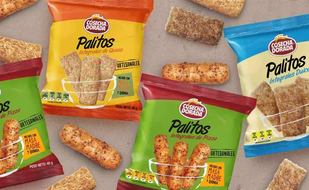 Nos sumamos al desafío de refrescar la línea de packaging para palitos de Cosecha Dorada, trabajando en un refinamiento gráfico que moderniza sin perder identidad.