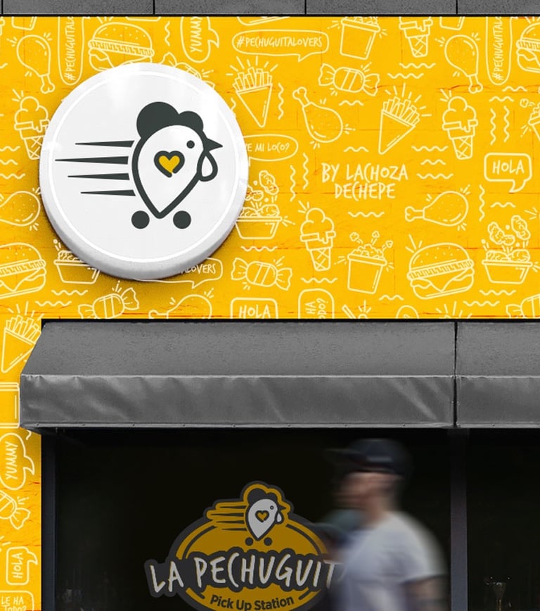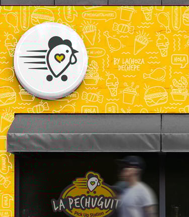 Para La Pechuguita Pick Up Station tomamos la tarea de crear su identidad bajo sus principales atributos (pollo+lugar+cool+nombre) creando un universo visual que gira entorno un sistema de identidad versátil y coherente.