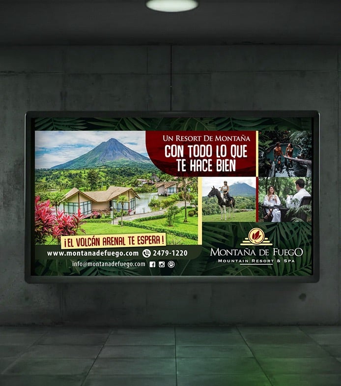 Para el Hotel Montaña de Fuego tomamos la administración de todo su lenguaje visual proyectando en tres enfoques que envuelven su negocio de hospitalidad: su razón de ser, la zona geográfica en que se encuentra y el contexto cultural-ancestral de la zona. Tres enfoques que definen una identidad de marca con una combinación de rasgos visibles, emocionales y comunicativos, que permite trasladar con coherencia a los diferentes puntos de contacto del Hotel una comunicación con personalidad, versátil y llena de experiencias hacia los huéspedes: los verdaderos embajadores de la marca.