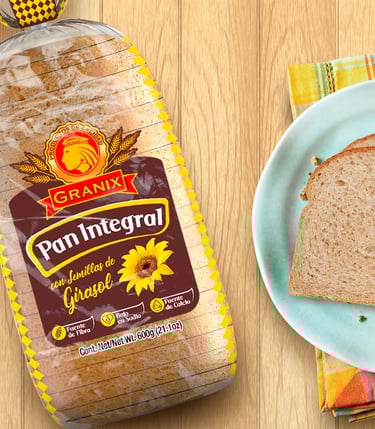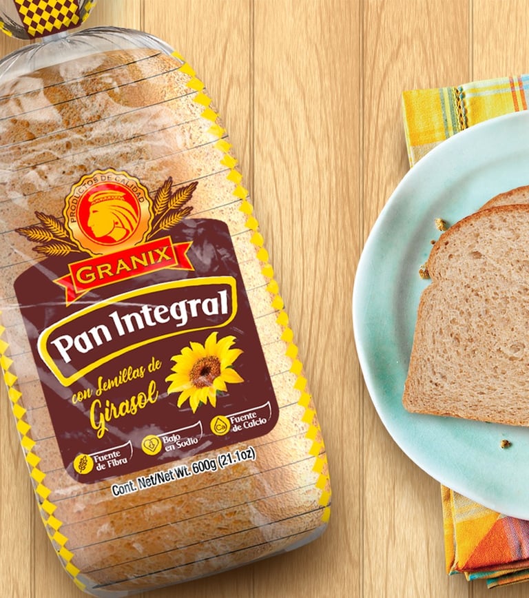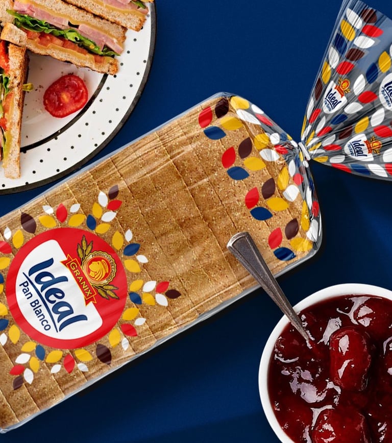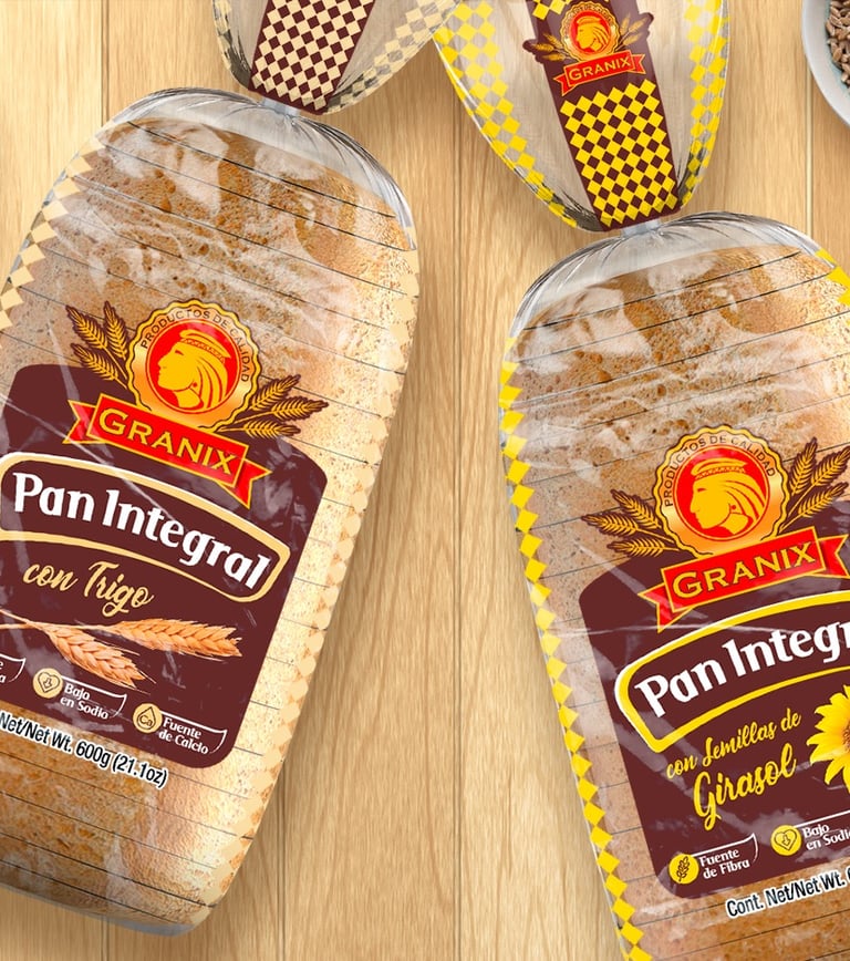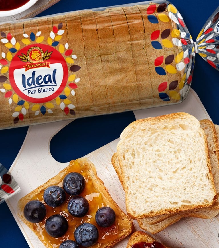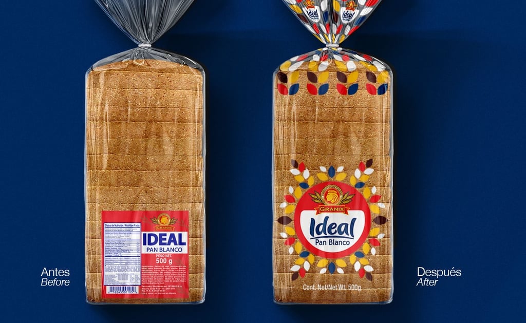 Los Panes Granix requería construir una nueva identidad atractiva, que les permitiera destacar pero sobre todo tener personalidad, dejando de lado la etiqueta tradicional que usaban y explotando eficientemente todo el soporte del empaque. El resultado de nuestro trabajo es una línea simple, esencial y vibrante, que permite mostrar la calidad y las cualidades físicas y reales de Pan Blanco Ideal y que a su vez se puede identificar fácilmente en los estantes de las tiendas.