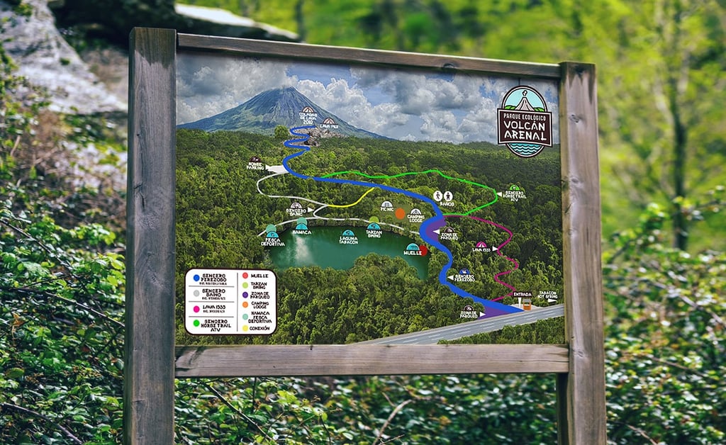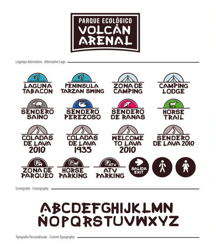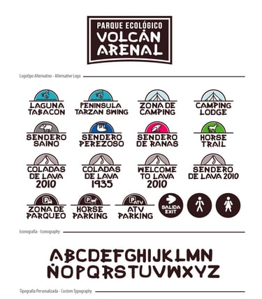 El Parque Ecológico Volcán Arenal es un lugar espectacular rodeado de un mundo natural en las faldas de unos de los volcanes más emblemáticos de Costa Rica: el Volcán Arenal. Es un Parque Ecológico donde puede disfrutar una amplia variedad de actividades al aire libre en un entorno único para conectar con la naturaleza. Desarrollamos el branding completo y el concepto de iconografía y comunicación para este parque donde el concepto general estuvo enfocado en sus atractivos y actividades de forma clara y orgánica.